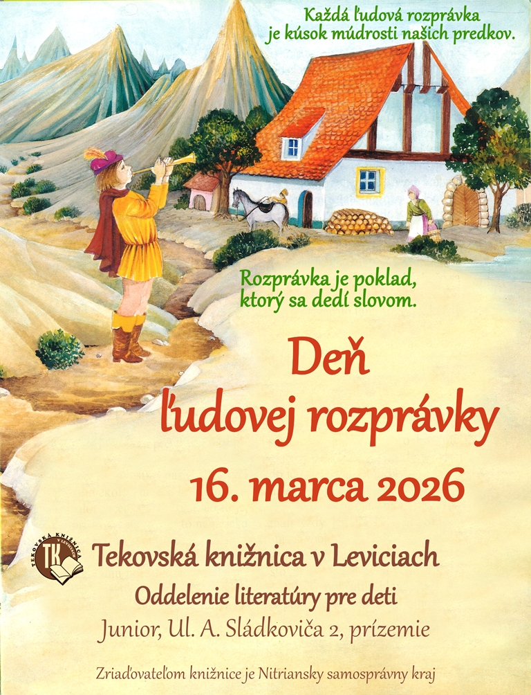 Dňa 16. marca 2026 sa v Oddelení literatúry pre deti Tekovskej knižnice v Leviciach uskutoční DEŇ ĽUDOVEJ ROZPRÁVKY.