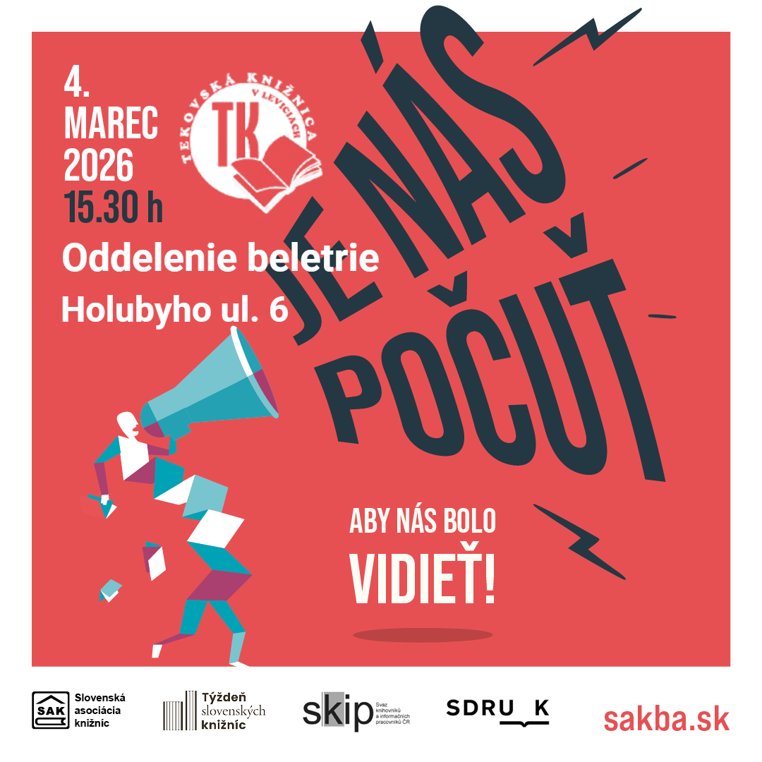 Už 6. ročník celoslovenského podujatia JE NÁS POČUŤ sa uskutoční v stredu 4. marca 2026 o 15.30 hod. v Oddelení beletrie TK LV (Holubyho ul. č. 6).