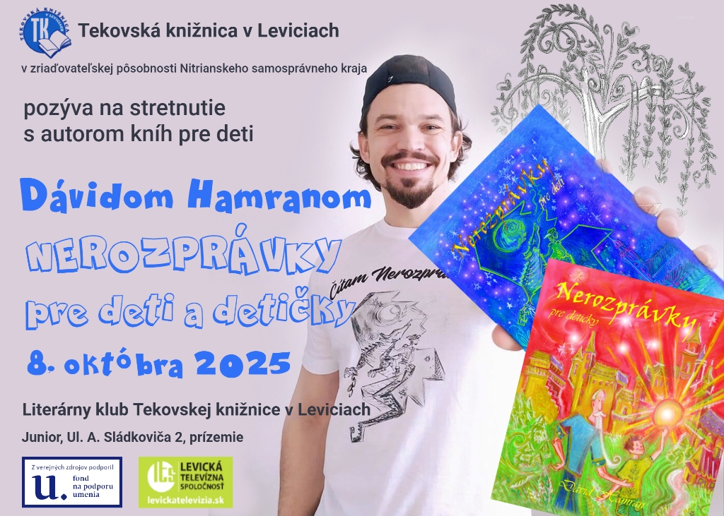 Tekovská knižnica v Leviciach pripravuje stretnutie s Dávidom Hamranom, autorom obľúbených kníh Nerozprávky pre deti a Nerozprávky pre detičky.